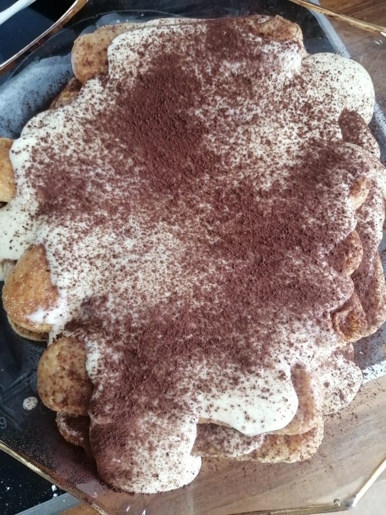 - Kaksi riviä savoiardi-keksejä (tai sen verran, että saat niitä astiaan kaksi kerrosta)